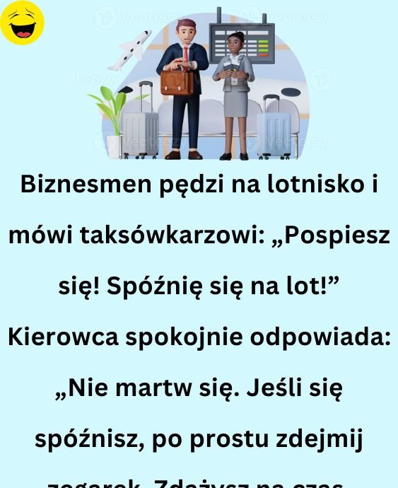 Kierowca spokojnie odpowiada: „Nie martw się. Jeśli się spóźnisz, po prostu zdejmij zegarek. Zdążysz na czas.
